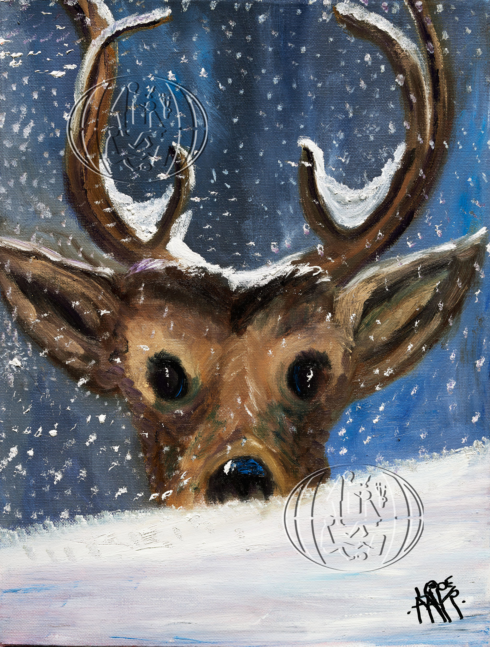 Deer with snowy antlers